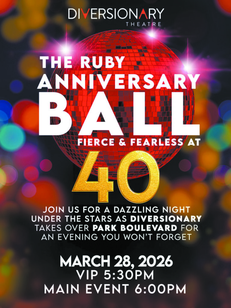 This spirit of celebration culminates on March 28 with The Ruby Anniversary Ball, an evening of performances, dancing, food, and joy. Tickets are available at www.diversionary.org, and fans can follow @DiversionarySD on Instagram and Facebook for updates and sneak peeks. “Whether you’re a longtime patron, an artist, or someone who believes in the power of LGBTQ+ stories, this is a moment to gather, celebrate, and toast the future,” Jenny invites.