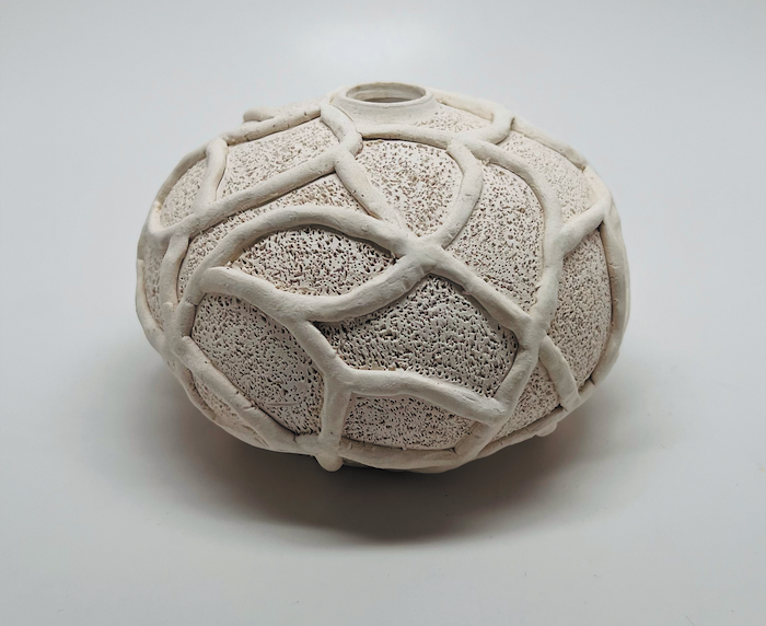 Airy, delicate, and light-catching. This lace-textured bowl adds elegance to any display. One of the last works from a beloved local artist.