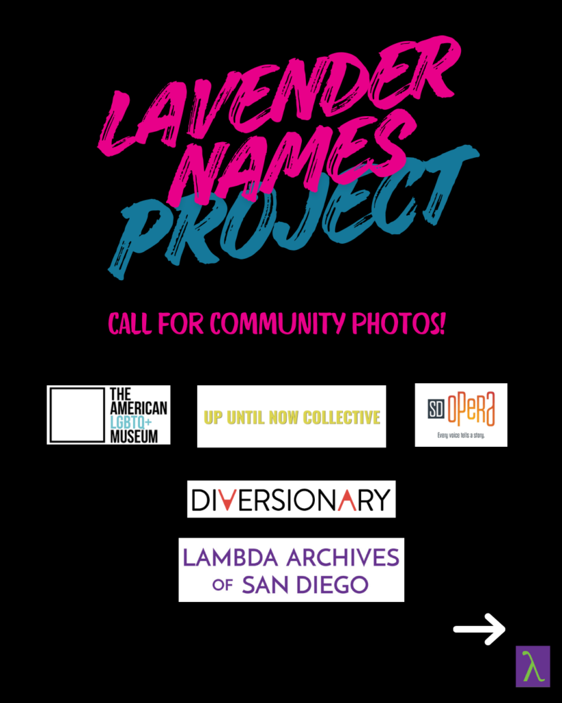 Lambda Archives of San Diego is proud to partner with the San Diego Opera, the American LGBTQ+ Museum, Up Until Now Collective, and Diversionary Theatre on the Lavender Names Project—a nationwide initiative to collect and preserve the photos and stories of LGBTQ+ people who have experienced government persecution.